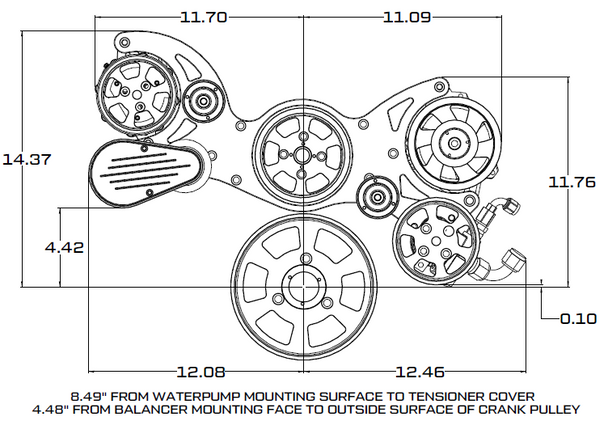 This kit will fit LS Based Engines with Camaro or Truck spacing. Requires harmonic dampener or hub adapter if reusing oem balancer