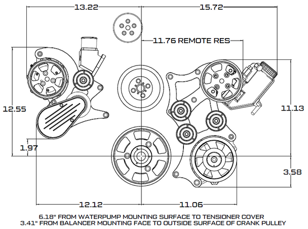 This system includes all the brackets and accessories if you're not running AC or Power Steering see the product options to remove those items.