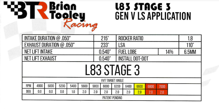 BTR LT Stage 3 Camshaft W/ Valve Train Components For LT 5.3L Truck - 52+ HP Gain