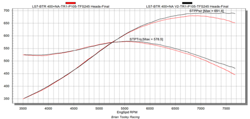 **Dyno test was done with on a Built 400ci+ LS7 engine with Trinity intake manifold, Trickflow 245cc Cylinder Heads & This camshaft. (Black Line)