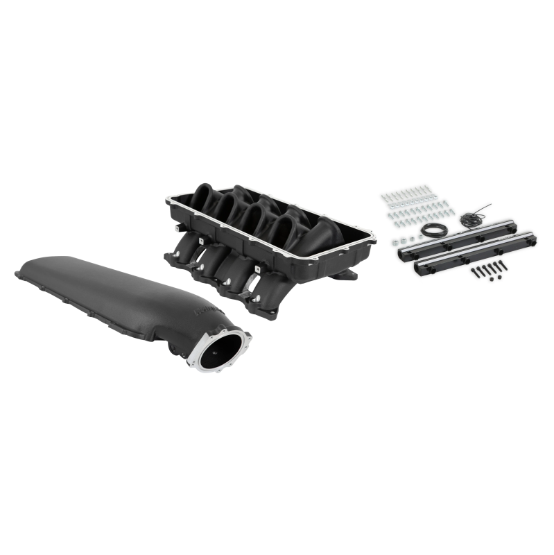 Holley Hi-Ram Coyote/Voodoo/Predator Intake Manifold w/ High Flow Fuel Rails - Black (For 93MM GT500/GT350 Style Throttle Body & LS 4-Bolt Throttle Bodies)