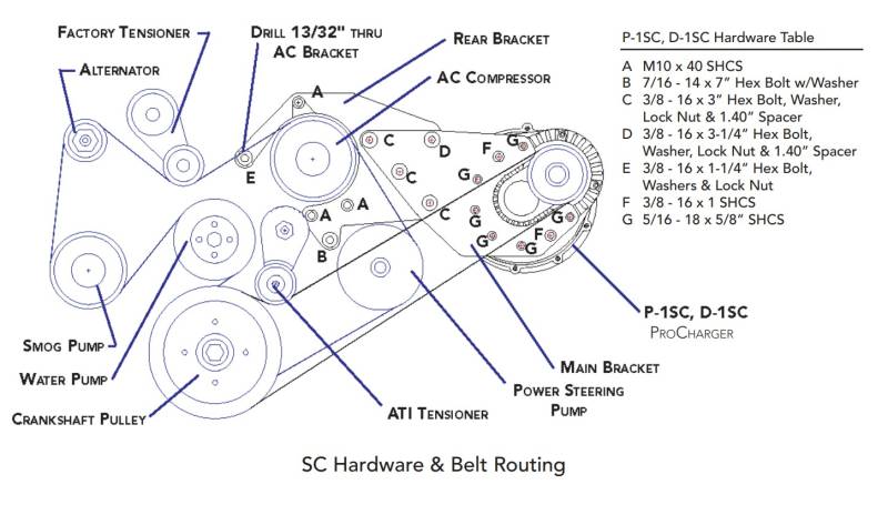 New ProCharger mounting bracket (8 or 12 rib tensioner available in options) for the 1986-93 Mustang. Standard satin/grey metal finish, polished or black powdercoat optional. Standard fitment for all P-1 through F-1 Procharger Head Units. Includes idler pullies, spacers and install hardware.