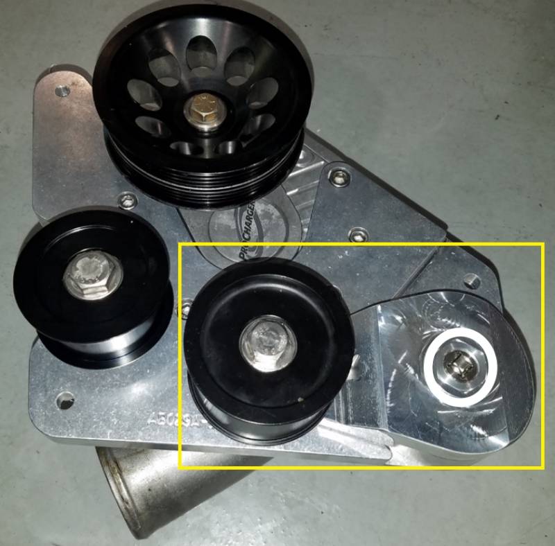 Note: This Heavy Duty spring loaded tensioner does not fit the earlier ProCharger brackets that use the eyebolt adjustment.