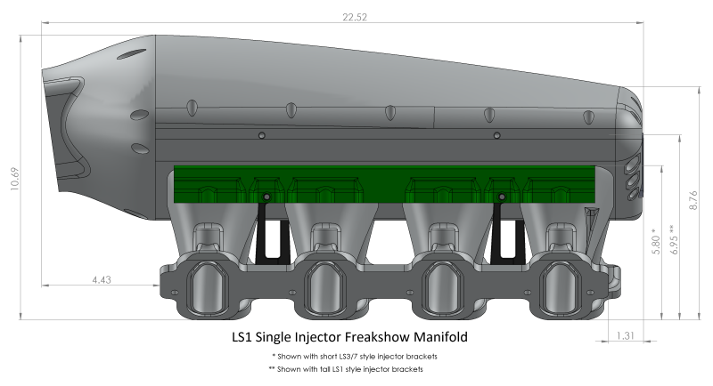 Freakshow intake manifold is inspired by the hottest NHRA Pro Stock designs. FED engineers gave it a sick meticulous design and added a raging plenum volume capable of 2,000 HP. The 100% billet aluminum Freakshow is built with a lot of options and versatility to serve naturally aspirated, Nitrous or remote inter-cooled boost applications.