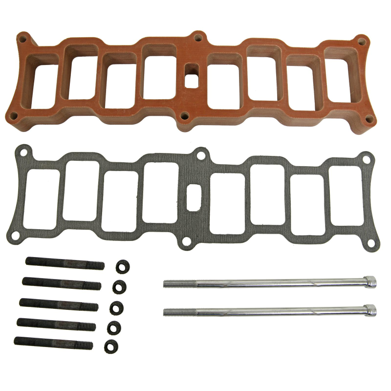 CNC-machined in the USA from premium phenolic material, Trick Flow® EFI heat spacers fit between the upper and lower intakes to create a heat flow barrier. This keeps the air in the upper intake cooler and denser. In addition, they will allow the use of taller valve covers by raising the height of the upper intake manifold. The EFI heat spacers are available in 3/8 in. and 1 in. thick versions; gaskets and longer mounting bolts are also included.
