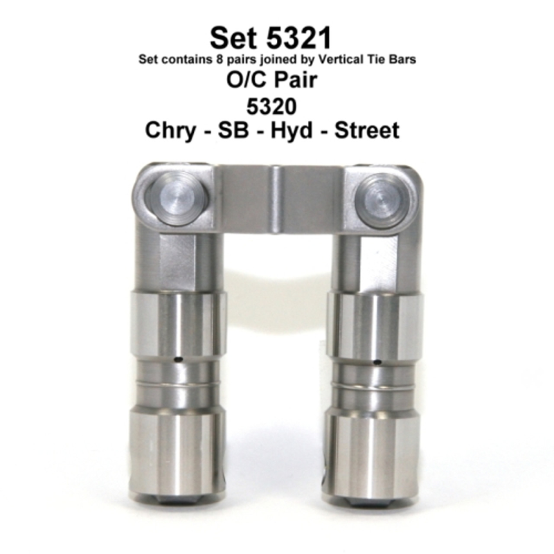 Morel 5321 Hydraulic Roller Link Bar Lifters for SBM Engines. Fits all Magnum blocks and Early LA Blocks with Magnum-Style heads.