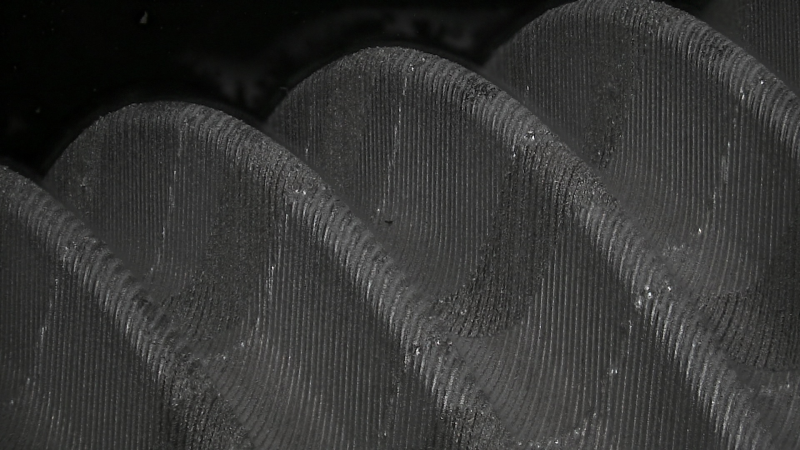 GripTec ZPE utilizes two patented technologies to enhance surface grip: GripTec Micro and GripTec Weld. GripTec Micro uses a CNC ablation process to remove material from the pulley surface. The multi-directional machined ridges and valleys not only provide maximum gripping force but also serve as escape channels for trapped air and debris, improving the connection between the belt and the pulley. GripTec Weld infuses a blend of metals and engineered aggregates to achieve an optimal friction coefficient on the pulley surface. These combined methods create unique contact points between the belt and pulley ribs, resulting in an unparalleled grip that prevents belt slippage. (See pictures for examples)