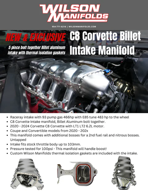 Wilson Manifold Chevy Corvette C8 2020+ LT1/LT2 Billet High Performance Intake Manifold W/ Auxiliary Fuel Rails & Nitrous Bungs Tapped - Black Anodized