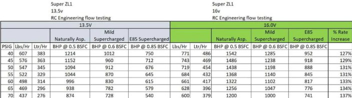 The Super ZL1 will also perform well at elevated voltage levels. When combined with the JMS FuelMax and the VaporWorx SmartRamp controller, a quite powerful pumping system can be used while still providing OEM reliability and low liquid level handling. The data in the following table is actual flowrate data. The estimated BHP/Brake Horsepower is at the flywheel. A 10% safety factor should be considered. The Super ZL1 is drop-in compatible with GM FSCM/returnless systems as well as the VaporWorx stand-alone PWM returnless controller.