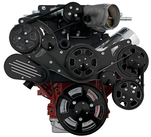 CVF Wraptor LS 8-Rib FEAD System For Edelbrock Superchargers with AC, Power Steering and Alternator - Black Diamond (Camaro Spacing)