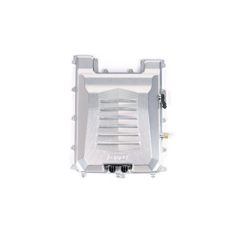 Our brand new LSA Billet Low Lid is designed and manufactured by Harrop Engineering from billet aluminium, providing customers with a premium and ultra low profile LSA Lid (lower than OEM LSA) to suit our Harrop LSA-H2650i Supercharger or the Factory LSA 1900 Supercharger. It is important to consider hood, scuttle, firewall and engine variations before fitting our new LSA Billet Low Lid. Our LSA Billet Low Lid is supplied with our upgraded intercooler core, which is 63mm thick vs 56.5mm OEM and features a high density, high efficiency core design with billet end tanks to withstand higher boost pressures compared to the factory end tanks which are prone to collapsing under load. We also include the option of either standard quick connect hose fittings and AN12 fittings for maximum flow performance as well as IAT and MAP Sensors