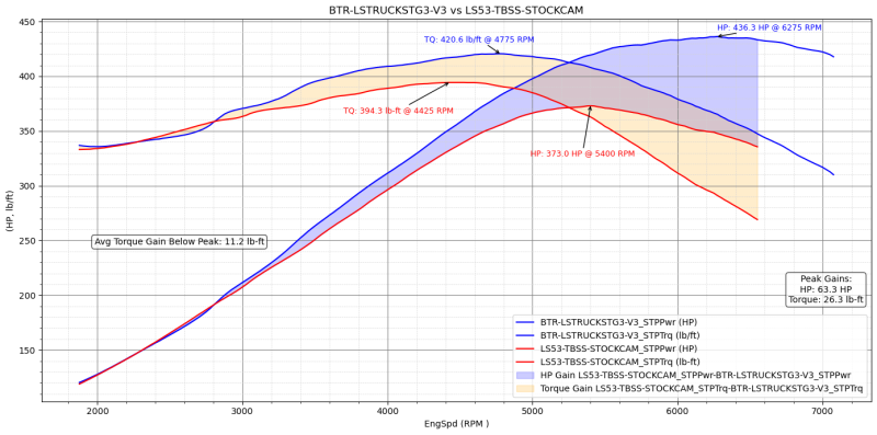 The new BTR V3 Truck Camshafts are the product of our most comprehensive truck cam development program to date, engineered to deliver increased average torque and horsepower across the entire powerband—ideal for trucks demanding strong midrange performance and improved towing capability. Development utilized advanced valvetrain simulation and dynamic modeling, combined with Spintron testing on both square-port and cathedral-port cylinder heads to ensure stable, reliable valvetrain control across all applicable platforms.