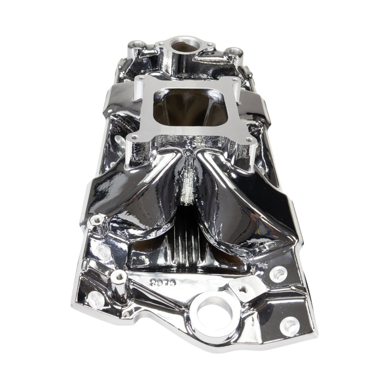 Edelbrock Victor Jr SBC 23 Degree Single Plane Chrome Plasma Intake Manifold - 4150 Flange