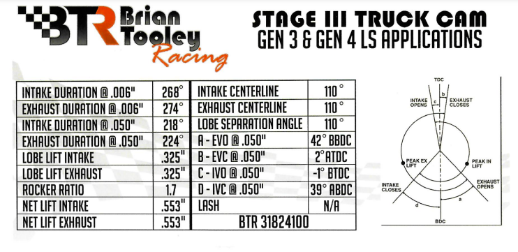 BTR LS Truck Stage 3 v2 Camshaft w/ DOD Conversion Kit For 5.3L LS Gen IV Engines - 50+ HP Gain (NON-VVT)