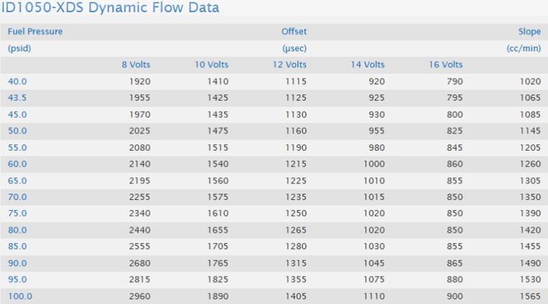 Typical Flow Rate in CC per minute: 1065cc/min @ 3.0 Bar (43.5 psi) Using Iso Octane at 52 Degrees C (125 Degrees F)