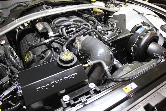 Let's be honest the sound of the 5.2L VooDoo engine is mesmerizing to say the least. The flat plane crankshaft firing order just hits all the right notes making the hair stand up on the back of your neck, especially at 8,000+ rpm. We can't imagine the hours Ford engineers logged dialing in this motor to create such proper TQ and HP curves. All we know is that it's only natural for its power adder to enhance that power curve in the proper manor. this Shelby GT350 is designed to be the ultimate "drivers" mustang and all out corner carving terror with a true balance between grip/power. To achieve those goals you need a predictable power curve, one that a centrifugal supercharger such as ProCharger delivers. Thanks to the efficient compressor design we have achieved enormous gains in torque across the entire rev-range to enhance the entire driving experience from the entry of a corner, to the exit at wide open throttle. With a ProCharger supercharger there is no "lag" in power to be waited on and no scary/dangerous throttle understeer situations. To put it simply this system flat out enhances every aspect of this amazing Flat Plane Crank engine with loads of predictable power, from the bottom of the rev-range all the way to that beautiful 8,300 rpm limiter.