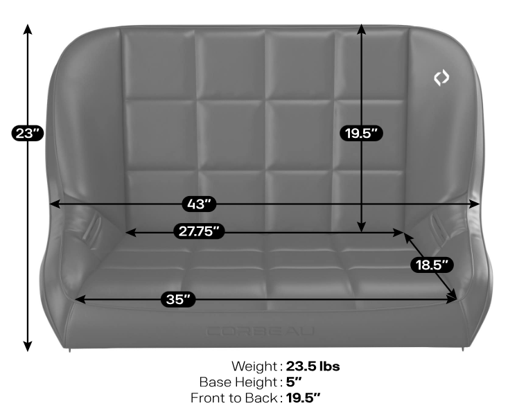 Vertical Mounting Tabs: The bottom of the 42” Baja Bench Off-Road Suspension seat has four vertical tabs designed to mount directly to your roll bar or roll cage. You can also purchase a Baja Bench Adapter, which will mount to those tabs and create a flat-bottom mounting surface.